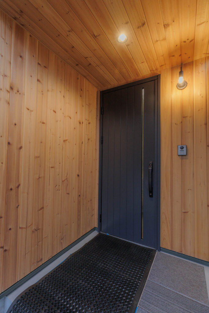 本物の木板を使用した玄関はサイディングでは表現できないあたたかみのある空間となっています。