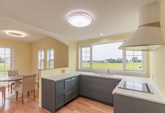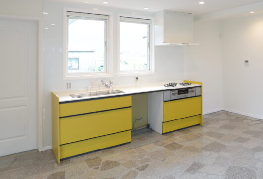 セルコホームでは完全オーダーのキッチンも作成しておりますので、このような特殊なキッチンも作成可能です。