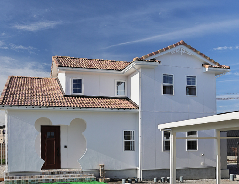 吹付の白い外壁と二色のS瓦は、よりそのかわいらしさを引き立てています。